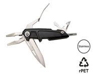 Professionelle Multifunktionszange aus hochfestem Edelstahl (2CR13). Griff aus Edelstahl. Montage mit Torx-Schrauben. Neue Generation der Sicherheitsverriegelung (einfaches Entriegeln). 12 Funktionen: Universalzange, Seitenschneider, Messer, Feile, Dosenöffner, Flaschenöffner, Säge, Mini-Stanzwerkzeug, 3 verschiedene Größen von Schlitzschraubendrehern, Kreuzschlitzschraubendreher. Rockwell-Härte: 48 Grad. Wird mit einer Gürteltasche aus Nylon geliefert.