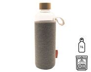 Einwandige Glasflasche aus Borosilikat. Schraubverschluss mit Bambusbeschichtung und Silikondichtung für eine perfekte Abdichtung. Kompatibel (ohne Deckel) mit Spülmaschine. Schutzhülle aus meliertem grauem Neopren. Fassungsvermögen: 500 ml.