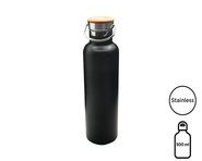 Doppelwandige Flasche aus rostfreiem 18/8 Edelstahl, für den Lebensmittelgebrauch. Verschraubter Bambusdeckel mit integriertem Edelstahlhenkel und Silikondichtung für eine perfekte Abdichtung. Fassungsvermögen: 500 ml.