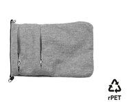Aus Wulong-Gewebe in Melange-Grau RPET 130g/m². 2 Aufbewahrungsfächer mit Reißverschluss, von denen eines auf der Rückseite ist. Vollständig gefütterte Innenräume. Verstellbarer Schultergurt aus Baumwolltwill. Volumen: 1,5 L.