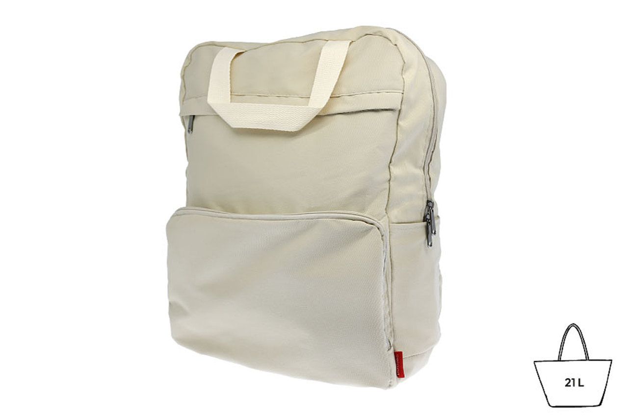 Aus Polycotton 160g/m². 3 Aufbewahrungsfächer mit Reißverschluss. 2 zusätzliche Taschen an den Seiten. Verstellbare und gepolsterte Träger. Griffe und Enden der Träger aus Baumwoll-Twill. Maße der gefalteten Tasche: 28x18x2,5cm. Volumen: 21 L.