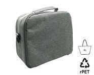 Isotherme Umhängetasche aus grau meliertem RPET - Wulongstoff. Kompatibel mit allen unseren Bento-Modellen, außer dem Modell 'Saitama'. Eine Außentasche unter der Klappe. Isolierende 3mm dicke Auskleidung. Schultergurt. Reißverschluss. Fassungsvermögen: 9,3 L.