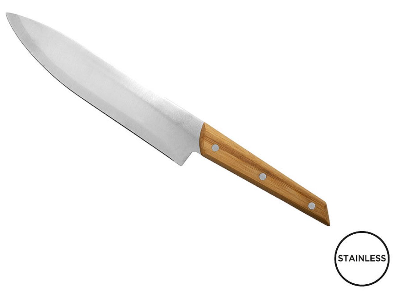 20 cm lange Klinge aus rostfreiem 420er-Edelstahl für den Lebensmittelbereich mit satinierter Oberfläche. Bambusgriff.