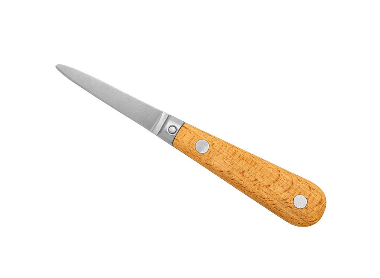 Lame en acier inoxydable 13/0 à usage alimentaire. Manche en hêtre massif et acier inoxydable. Mitre emboutie en acier inoxydable. Lame fine non aiguisée. Aussi appelé lancette à huîtres.