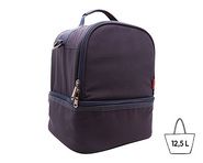 Sac de déjeuner isotherme double compartiment en tissu wulong gris chiné RPET. Dimensions du compartiment haut : 25x20x16cm. Dimensions du compartiment bas : 25x20x9cm. Compatible avec tous nos modèles de bentos. Finition isolante de 3mm d'épaisseur. Bandoulière. Possibilité d'insérer une carte de visite. Poignées renforcées et rembourrées pour une meilleure prise en main. Fermeture éclair. Contenance : 12,5 L.