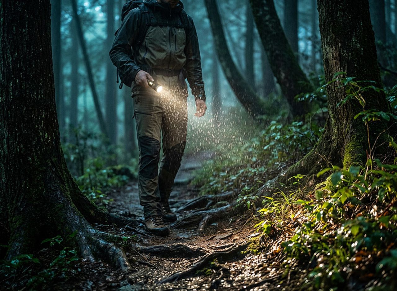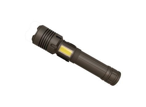 Manche en aluminium anodisé. 2 fonctions : Lampe torche LED 5W (100%, 30% ou clignotant) et éclairage latéral COB (100%, 30%, rouge fixe ou rouge clignotant). Système de focus permettant d'augmenter la distance maximum d'éclairage en concentrant le faisceau. Indicateur de charge. Joints sur chaque pas de vis pour une meilleure étanchéité (ne pas immerger). Bouton on / off sur le côté de la lampe de poche et dragonne à l'arrière du manche. Fonctionne avec une batterie rechargeable de 1200 mAh. Autonomie à pleine puissance : 2h. Livrée avec un câble d'alimentation USB-A / USB-C. Puissance de la LED : 5W (350 lumens). Longueur du faisceau : 150m.