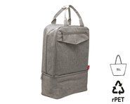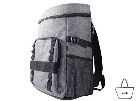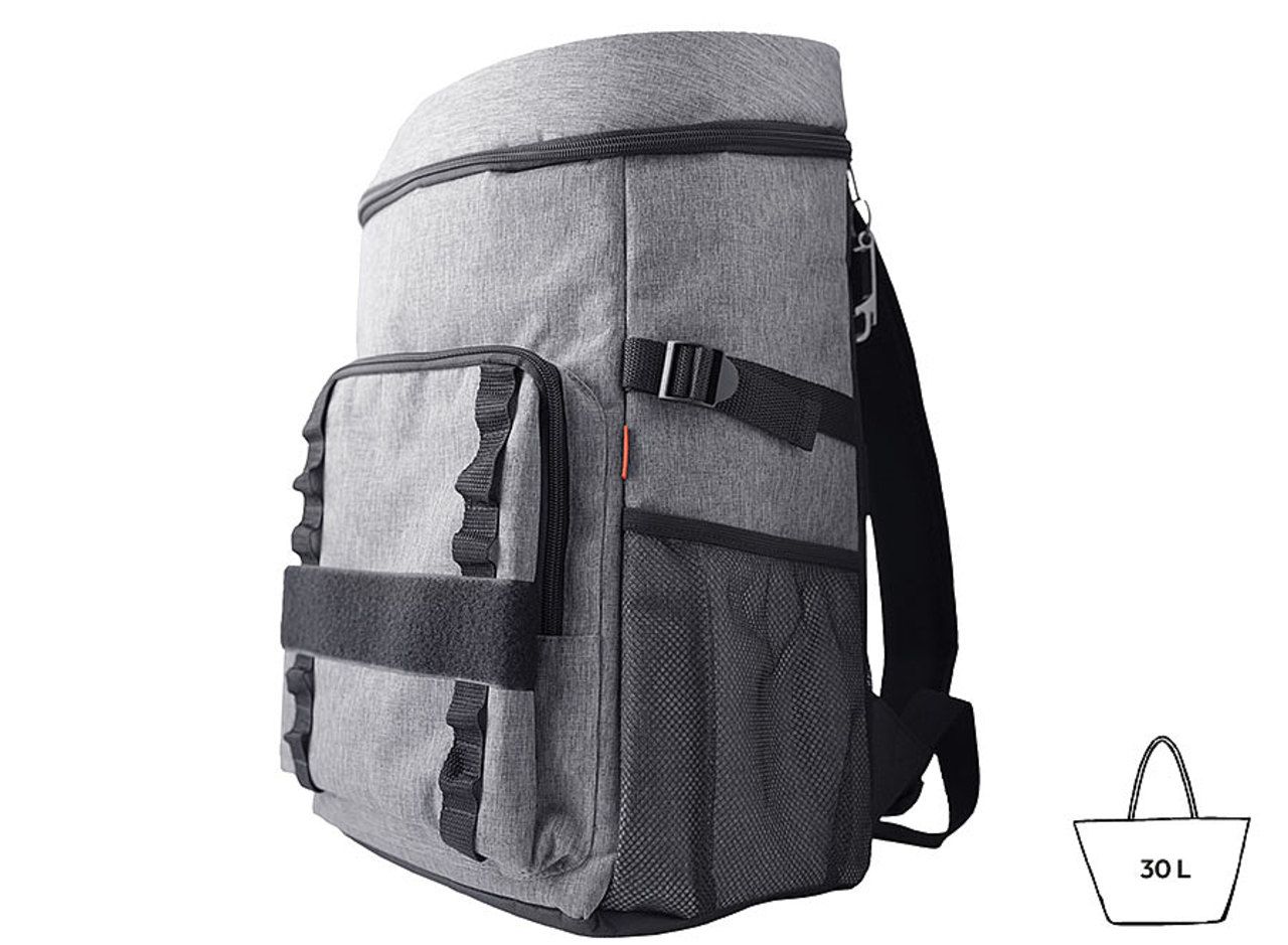 Sac à dos isotherme en tissu wulong gris chiné. Compatible avec tous nos modèles de bentos. Finition isolante de 5mm d'épaisseur. Poche ventrale zippée et filets de rangement de chaque côté. Lacets de serrage de chaque côté et bretelles rembourrées. Fermeture éclair avec décapsuleur en aluminium. Contenance : 30 L.