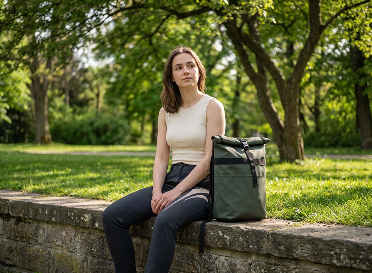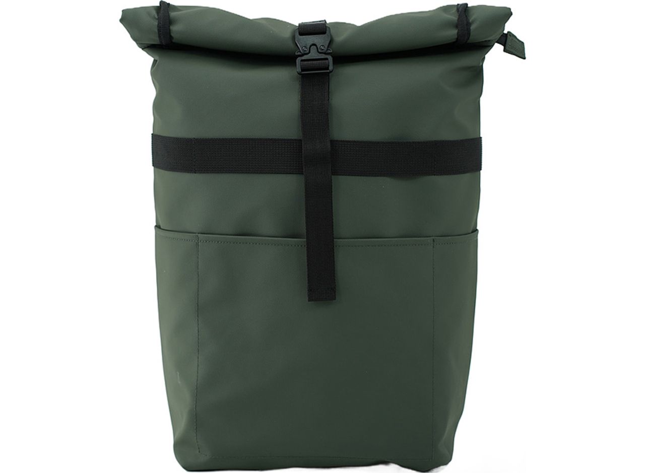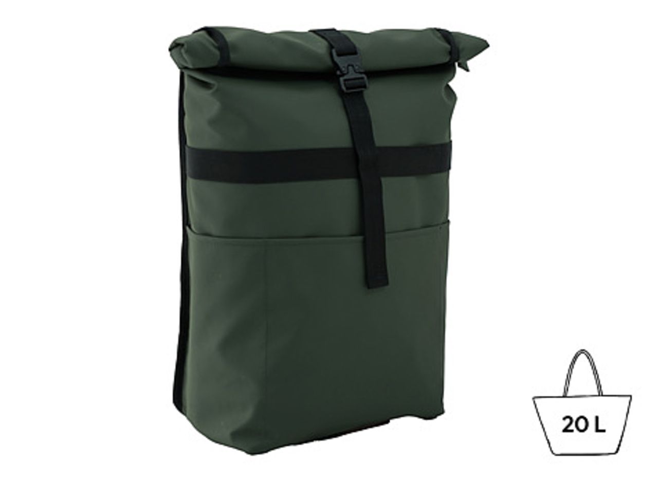- Water-repellent finish with zip and fold-over closure secured by a clip for perfect waterproofness.