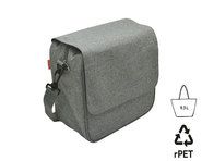 Insulated bag in heather grey wulong RPET fabric. Suitable for all our bento models. Additional Outer pocket. Reinforced handles. 5mm thick insulation. Zipped closure. Capacity: 20 L.