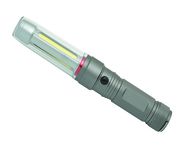Anodized aluminium handle. 2 functions: Flashlight (LED power: 1W (70 lumens). Beam distance: 10m) and signaling lamp (COB power: 3W (120 lumens). Beam distance: 5m). 2 lighting modes (continuous or flashing). Strong magnet at the back of the torchlight. Seals on each screw thread for for a higher waterproof level (do not immerse). On/Off button on the handle. Works with 3 AAA batteries (included). Waterproof level: IPX-4.
