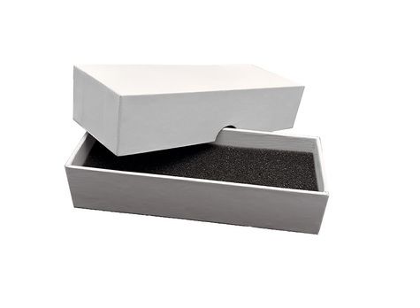 White rigid cardboard gift box with protective foam insert for a premium presentation of many products from our collection.