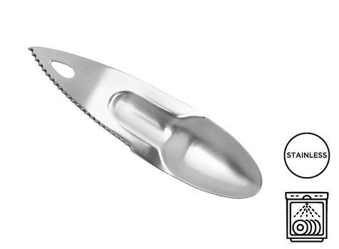 - Serrated blade on one side of the handle allowing you to cut and enjoy a kiwi, an avocado or any other fruit with this single piece of cutlery.