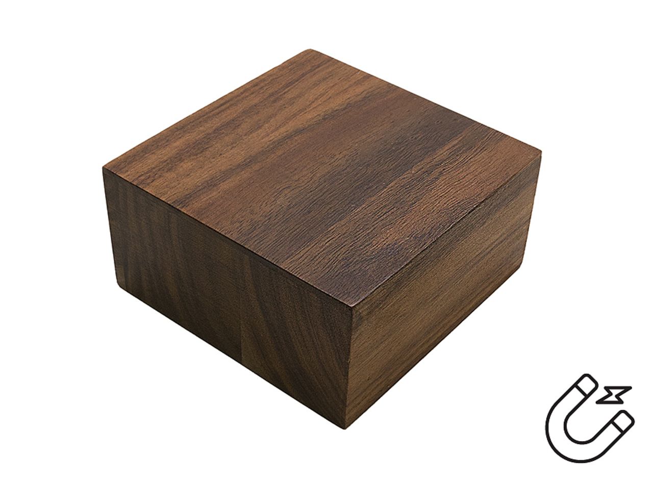 Acacia wood and Ferrite magnets. To hang on the wall for knives and other metallic items in every room of the house such as kitchen, entrance, office...
